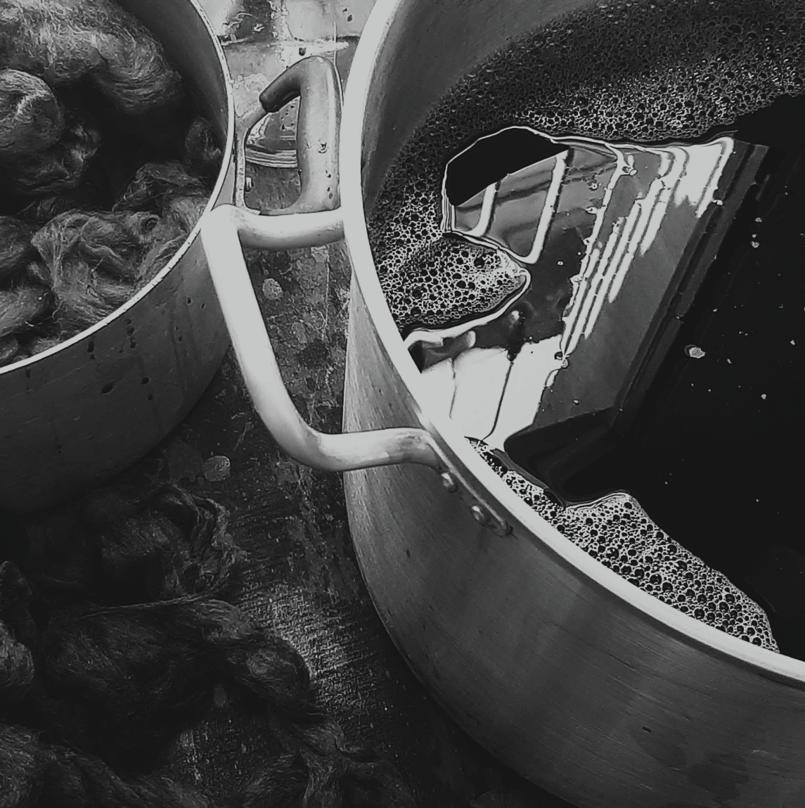 El teñido | Se tiñen uno a uno, pacientemente. El baño es artesano y utilizamos sal para fijar el color. Reutilizamos los tintes en agua evitando al máximo la contaminación y respetando el medio ambiente. Los tonos són sorprendentes, matizes inesperados, tonalidades infinitas.